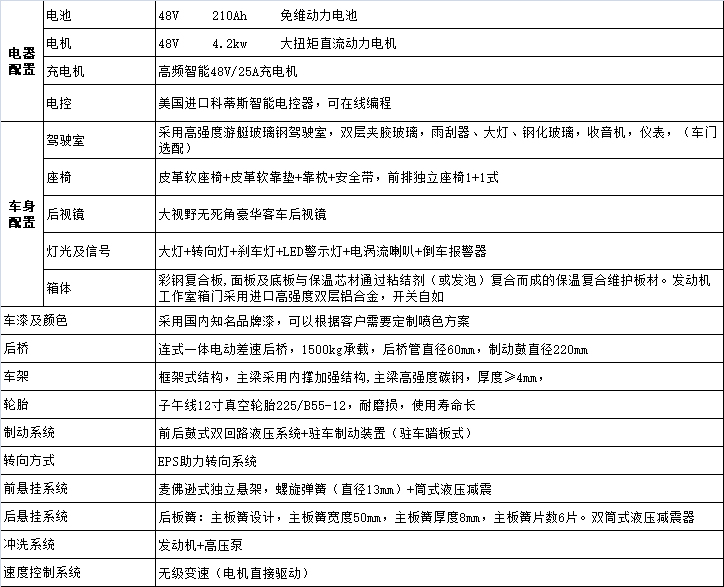 6、底盘采用微型汽车底盘结构,前、后轮液压制动,具有良好的稳定性和安全性;