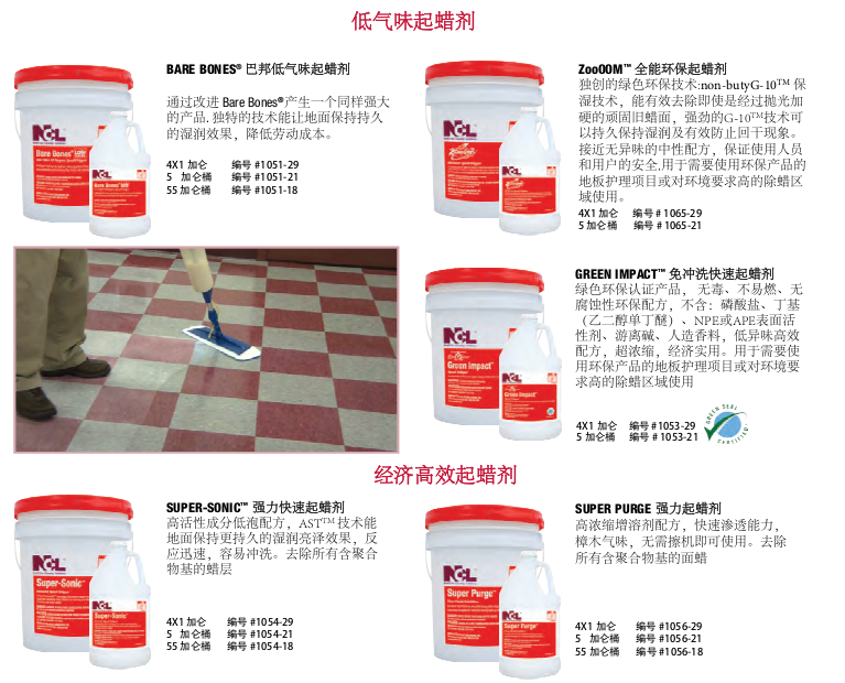 NCL致力于为我们的客户创造地 板护理解决方案™,打造地板具 有显著的光泽,无与伦比的耐 用性,和独特的成本节约优势。NCL的优质服务和产品创新是行业公认的。