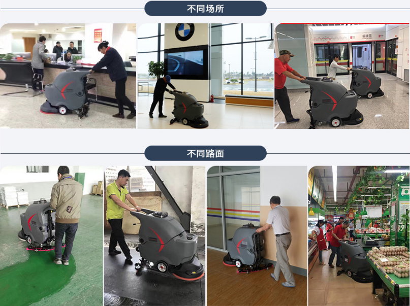 可清洁不同的材质地面,如:环氧树脂地面,油漆地面,混凝 土,瓷砖地面等。