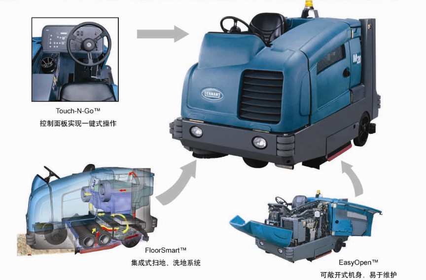·室外:坦能扫洗一体机工作效率高,一次通过可立即干燥地面
